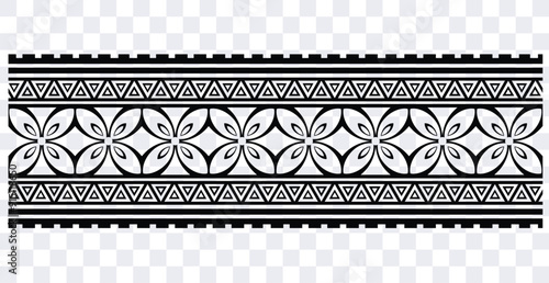 Polynesian pattern tribal tattoo border. Tribal tattoo geometric fore arm samoan band.Tattoo eps forearm samoan sleeve bracelet.Fabric seamless isolated hawaiian pattern on white background.