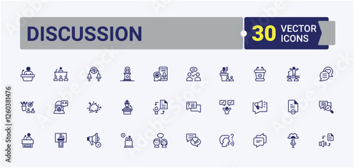Discussion linear icon. Containing bubble, class, art, speaking, talk, businessman, room, person. Simple icon designs. Vector outline and solid icons collection.