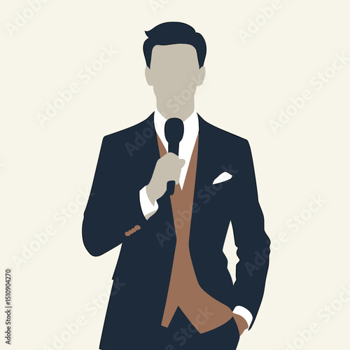 Public Speaker: An illustrated figure of a public speaker delivers a presentation with enthusiasm, poised behind a podium adorned with microphones.
