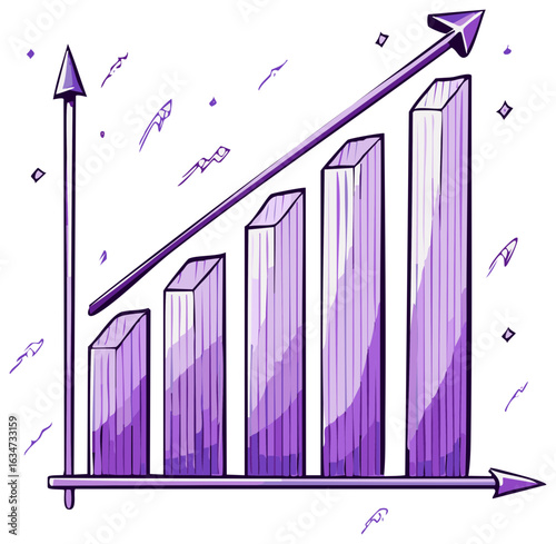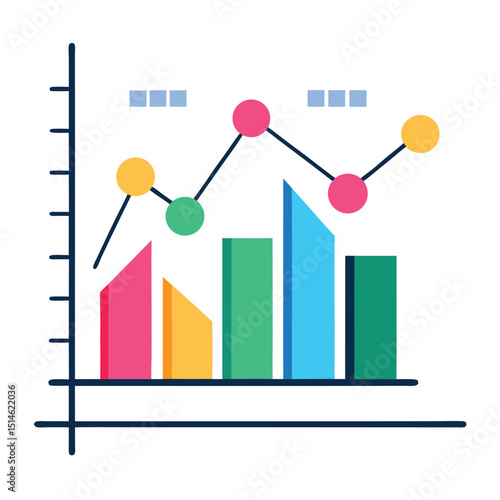 A colorful hand-drawn bar chart icon with four bars representing statistical data and growth.