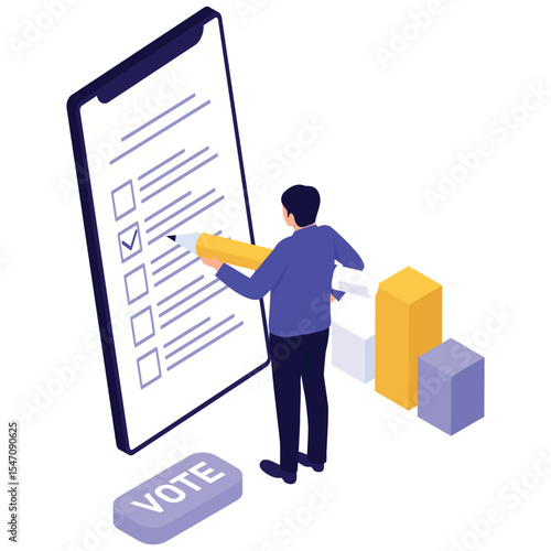 Isometric business growth vector illustration: statistical data analysis for infographics and presentation design