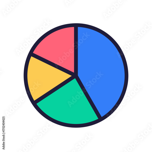 colorful pie charts, vibrant segments, data visualization, graphic design, bold colors, statistical representation.