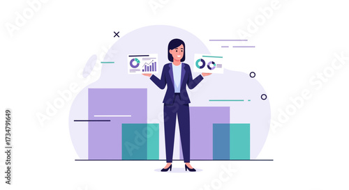 Businesswoman Presents Data Charts on Screen Showing Analysis and Statistical Information