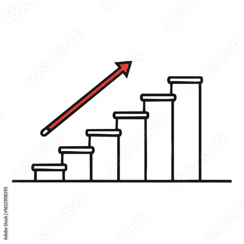 Growing bar graph icon set. Business graphs and charts icons. Statistics and analytics vector icon. Statistic and data, charts diagrams, money, down or up arrow. Vector illustration.