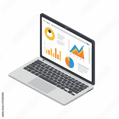 Laptop showing charts and graph, analysis business accounting, statistics concept. Digital marketing, business analysis. Data growth diagram clean and simple interface. Modern Admin website . Vector