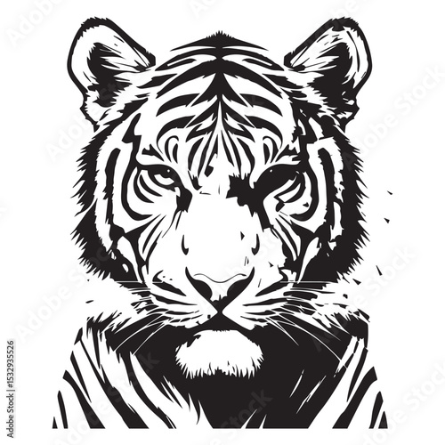 3d tiger face black and white silhouette vector illustration.