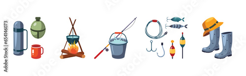 Travel and tourism flat icons set – adventure, vacation, journey symbols