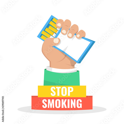 Quit, stop, giving up smoking concept. Person smoker rejecting, refusing, saying no to cigarettes, tobacco addiction. Nicotine rejection. Flat graphic vector illustration isolated on white background