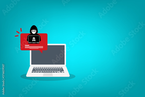 Concept illustration of computer crime and hacker mascot. Vector pictures