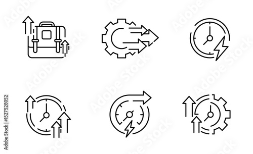 Set of Productivity and Boosting icon, Efficiency, Fast Symbol Outline icon, Editable Stroke