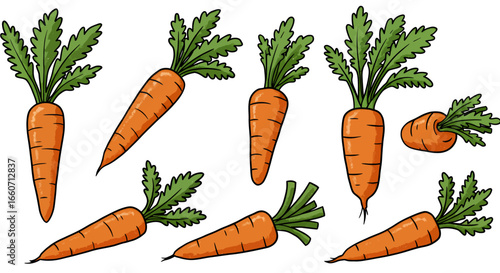 Orchard Variety: A delightful collection of cartoon fruit trees, each laden with vibrant, delicious fruits. Ideal for illustrations related to nature, healthy eating, and agricultural themes.