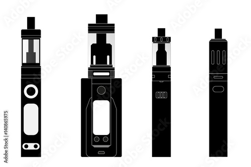 Realistic electronic cigarette concept. Colorful squonk box mod and dripping atomizer. 3 color options.