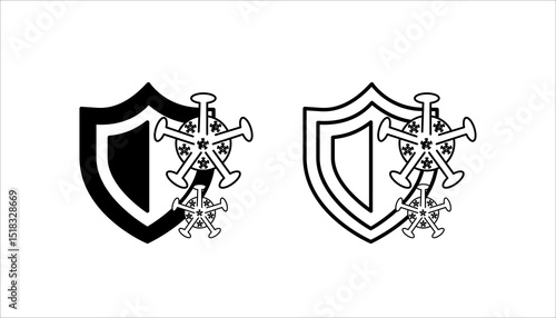 Shield virus protection icon sign. Shield protects the immune system and antibacterial protection vector design and illustration.