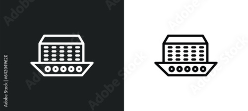 simple vector of noah’s ark and rainbow, religious biblical scene in clean line drawing style