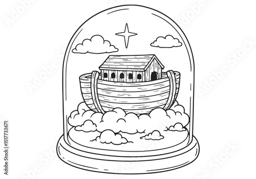Noah's ark sketch engraving black and white outline. Scratch board imitation. illustrated in vintage line art style on a white background.