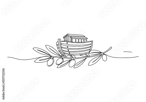Minimalist continuous line drawing of Noah's Ark on Mount Ararat