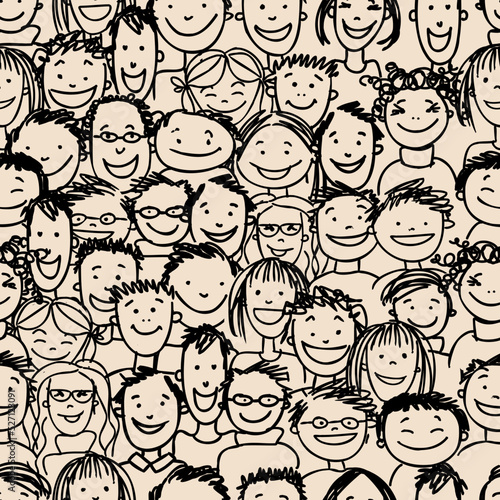 Vector illustration in simple flat linear style with smiling cartoon characters - teamwork and cooperation concept