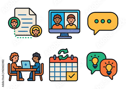 coworking line and colors style set icons design, teamwork and strategy theme Vector illustration