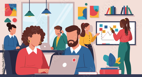 Modern coworking space with creative professionals Vector flat minimalistic isolated