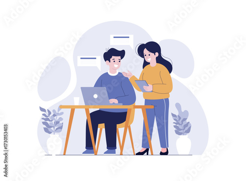 Coworking space illustration. Business people teamwork. Vector flat design. Business people office work. Remote work.