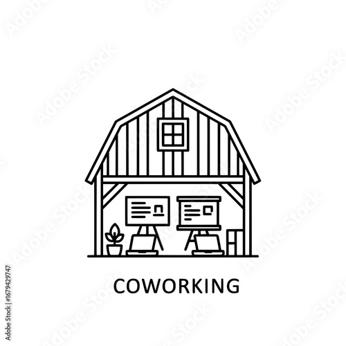 Coworking banner web icon vector illustration concept with icon of office space, desk, sharing, common infrastructure, freelancer, and cost savings