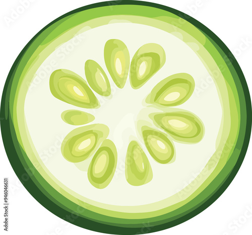 A refreshing and healthy green cucumber slice illustration showing its distinct circular shape vibrant light green flesh and visible seed pattern