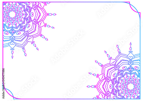 水彩 グラデーション エスニック 曼荼羅 フレーム カード 青