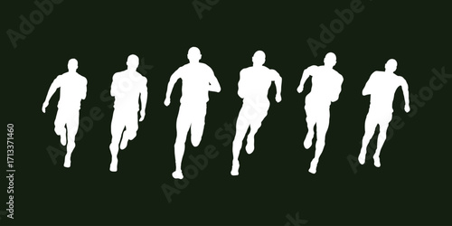 Silhouette vector of a marathon running sports man in motion, representing athletics, endurance, competition, fitness, and outdoor physical activity in minimal flat design