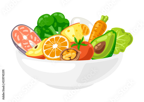 Healthy eco diet plan and metabolism concept. Fresh organic vegetable. Proper nutrition. Concept of healthy eating, personal weight-loss diet. Flat vector illustration