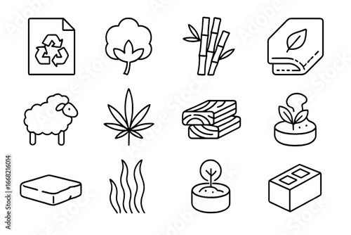Eco-friendly materials outline icons set – sustainable, natural, environmental design symbols