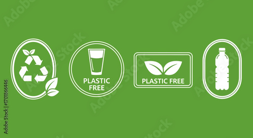 Illustration showing eco-friendly symbols promoting recycling and sustainability with water, battery, and light bulb icons