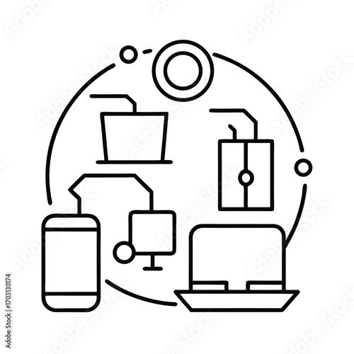 PFAS regulations icons outline with  key concepts. Outline icons set.