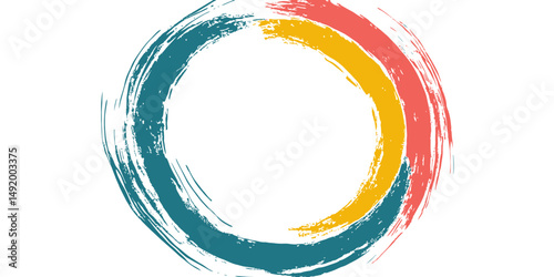 Rough grunge circular hand drawn brush stroke icon frame element. Circular ink brush stroke. Circle doodle ink black shape. Vector illustration.
