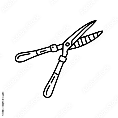 Hedge shears doodle. Pruners sketch. Gardening icon
