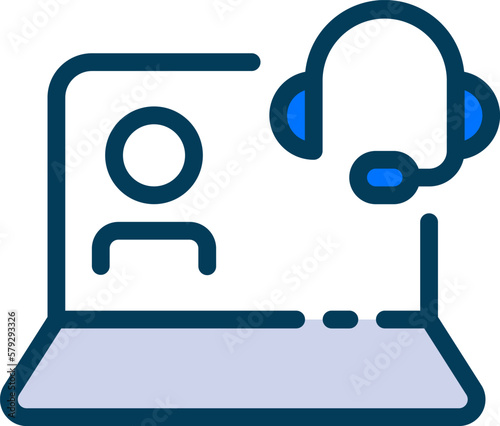 Simple icon of a laptop displaying a customer service headset, representing online support and communication
