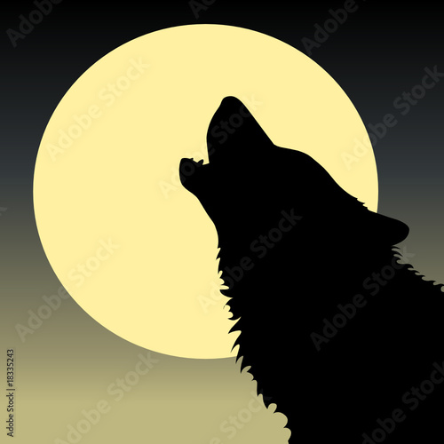 A Wolf in Silhouette howling at moon suitable for Halloween Art