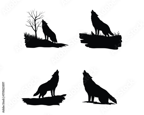 Set of wolf silhouettes isolated on a white background, Vector illustration.