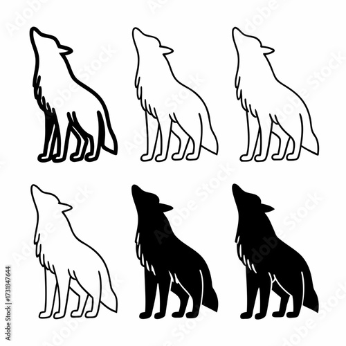 Minimal wolf silhouette on white background artwork set for nature lovers