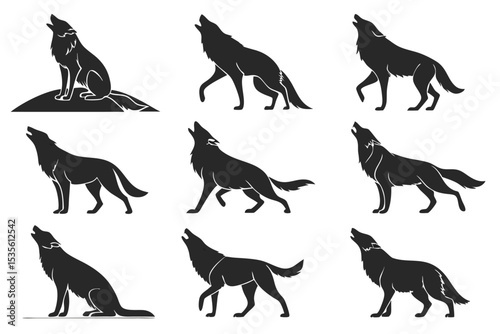 Minimalist Wolf Silhouettes Vector for Wildlife and Nature Designs