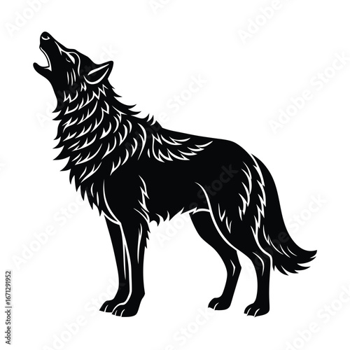 Wolf standing and howling , vector illustration, silhouette of wolf,