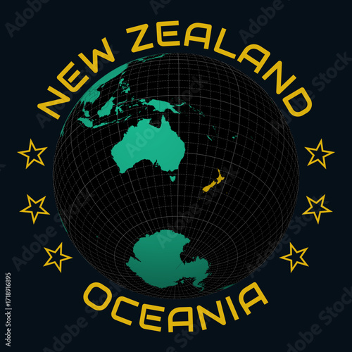 Abstract mash line and point scales on dark background with map of New zealand. Wire frame 3D mesh polygonal network line, design sphere, dot and structure. Vector illustration eps 10.