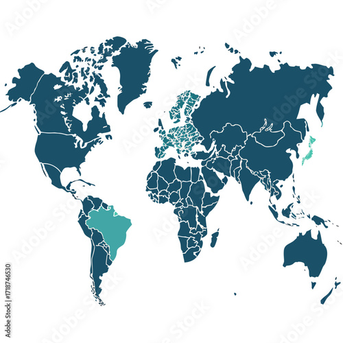 world map art, world map picture, world map vector image, modern world map, Illustration, eps 10, worldwide, all continents, all countries, worldwide project
