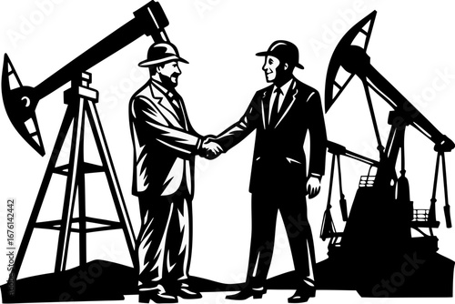 Cartoon, Businessman and Arab businessman handshake deal Oil Drilling business.