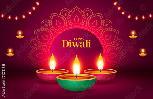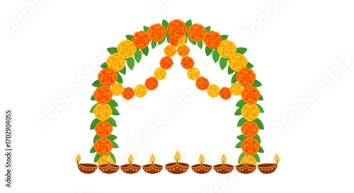 Hindu festival lamp graphic, symbol of light, prayer, and auspicious celebration