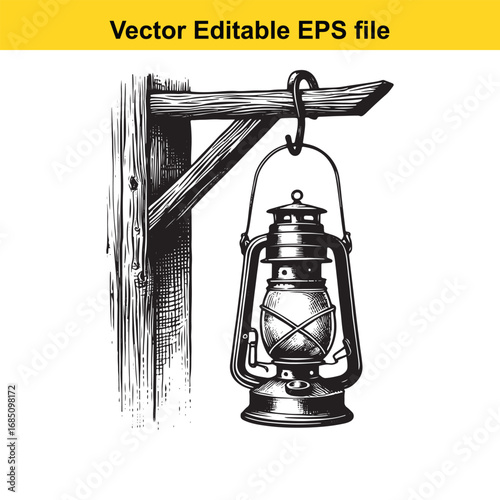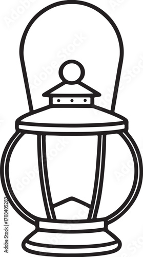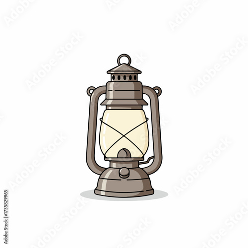 Retro gas lamp with glowing fire wick. Rustic tourist oil lantern icon vector illustration. Old lamp for hiking. Classic lamp design, lantern of Vintages lamp isolated on black and white background.