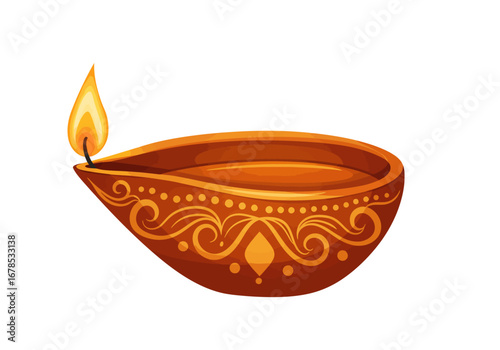 Traditional indian diya oil lamp vector illustration for festive celebrations and spirituality