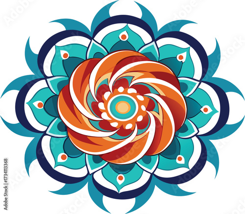 Vibrant graphic illustration of traditional Indian oil lamps intricate paisley patterns and radiating stars.