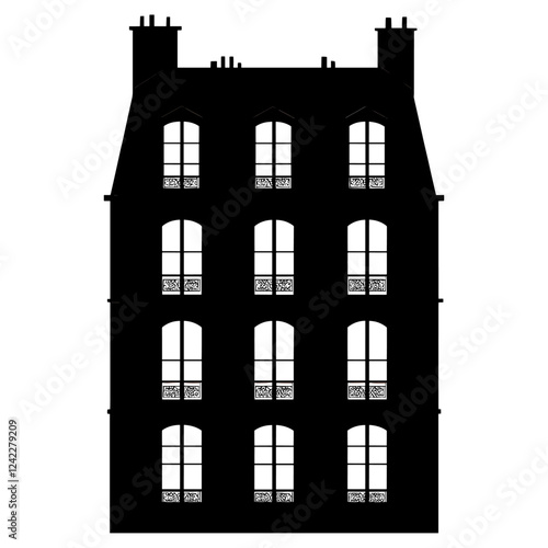 Classic parisian haussmannian apartment building facade detailed architectural representation urban cityscape architecture facade design historic residential architecture isolated on white background