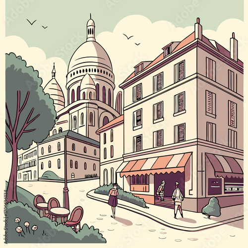Parisian Cafe Terrace Cartoon Animation Background Vector illustration