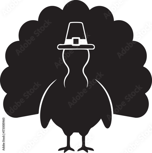 Vector illustration of isolated turkey bird with pilgrim hat icon, suitable for Thanksgiving designs, festive themes, holiday artwork, and seasonal celebration visuals